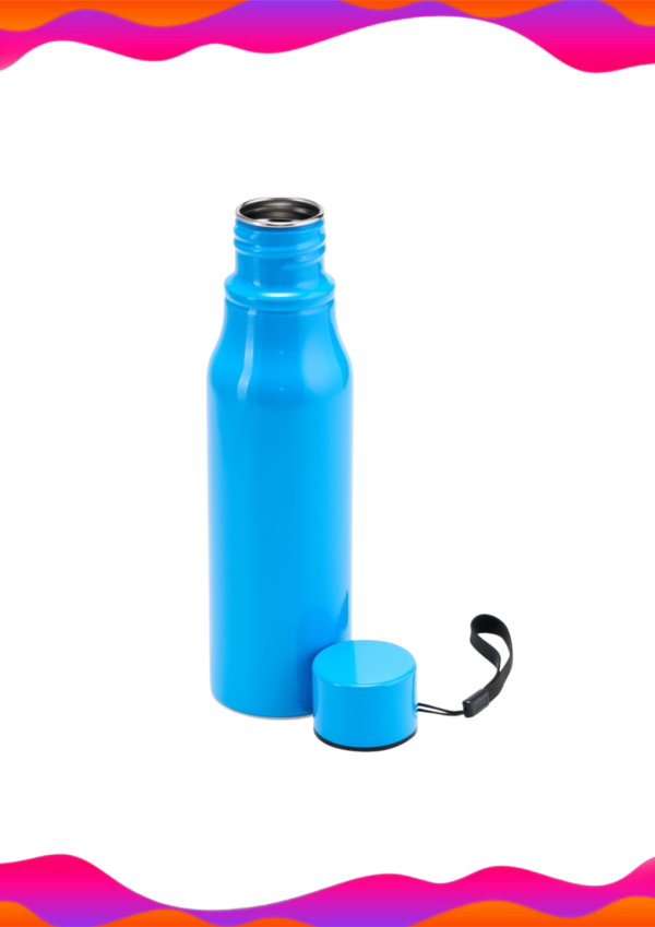Garrafa inox com capacidade de 750ml. Contém tampa rosqueável com alça para transporte.